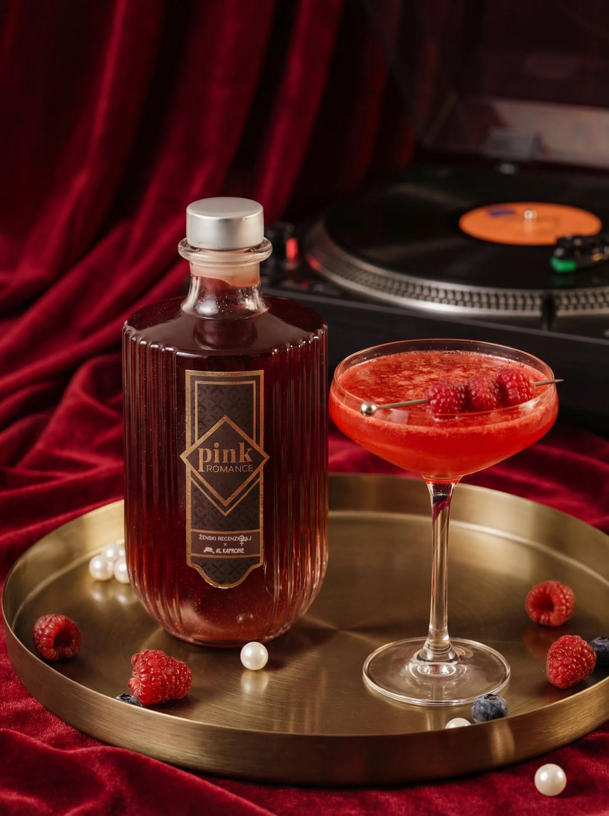 Pink Romance kreirali su ŽENSKI RECENZIRAJ i Alkaprone, a riječ je o snažnom, ali senzualnom, glamuroznom, ali decentnom, romantičnom voćnom likeru. Baš kao što je svaka od nas različitih osobina i karaktera, tako i Pink Romance obuhvaća skup različitog voća čineći tako pravu rapsodiju okusa i mirisa u divnom pakiranju. Isprepliće se slatkasto sočni okus šumske jagode, kiselkasto svježi okus maline te dubok i intenzivan okus crnih bobica, kupine, borovnice i ribizla, a cijela kombinacija okusa zaokružena je profilom hladno prešane višnje maraske. Efekt glamura i luksuza odaju divne šljokice.